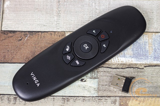 Ще однією незаперечною перевагою Vinga 022 є функціональний комплектний пульт ДУ, який підключається до плеєра за допомогою USB-приймача. Подібні ми вже зустрічали раніше в моделях Vinga 021, Vinga 031 і Vinga 041. Він оснащений акумулятором, для зарядки якого в комплекті є відповідний кабель.
