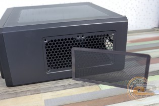 The removable dust filter is also located on the bottom panel, where it works with the power supply. The mesh slightly protrudes beyond the stamping, although no one will see it here anyway.