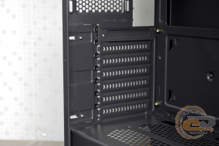 The case has a width of 205 mm, which allowed for a mounting spot for a 120-mm fan with slight height adjustment. A pressure plate with a pair of thumb screws is intended for securing devices in the expansion slots. Similar convenient elements are used for securing both side panels.