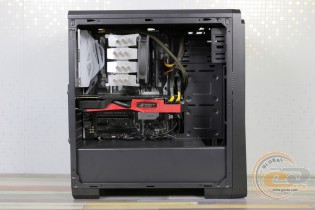 There should also be no particular problems with large CPU coolers. The 158-mm Scythe Mugen 3 easily fits inside the case. The same applies to other tower coolers with a height of up to 164 mm. And this is most modern models, except perhaps the largest ones. Replacement will also proceed without problems, as there will be no need to dismantle the system board to install and remove the reinforcement plate.