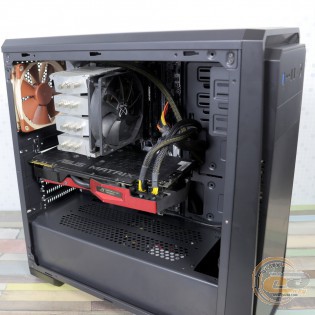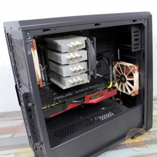 The appearance of this solution may not appeal to everyone, although the practical matte finish and semi-transparent acrylic window (a window, not a small window) are pleasing. However, looking at an office system with a budget microATX board and a boxed cooler through it will not be very pleasant. And the manufacturer took this into account! Inside, there is room for powerful CPU coolers and long (without exaggeration) graphics cards. Installing a pair of fans will help properly cool all components, as we have experienced firsthand.