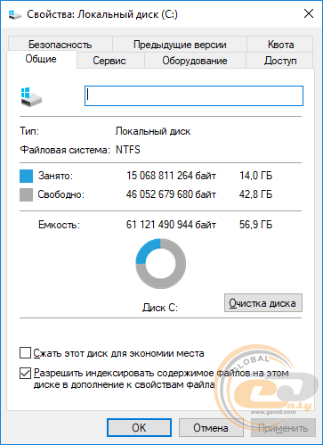 The disk subsystem is represented by a 64 GB eMMC drive FORESEE NCEMASLD. At the first launch of the mini-PC, about 43 GB was free, which is quite enough for installing the necessary software.