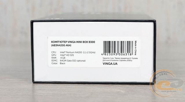 The 4-core 4-thread Intel Pentium N4200 processor used in the Vinga Mini BOX B300 is built on the 14nm Intel Goldmont microarchitecture and belongs to the Intel Apollo Lake series. The base speed is 1.1 GHz, but it can dynamically increase to 2.5 GHz.