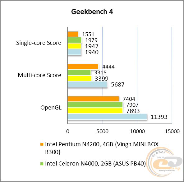 As competitors for comparison, we chose previously reviewed mini-PC models ASUS Mini PC PN40 and Mini PC PB40 with different RAM capacities and Intel Celeron N4000 processor, as well as the Vinga Twizzle J116 laptop based on the Intel Pentium Silver N5000 processor (4/4 x 1.1 - 2.7 GHz) and 4 GB of RAM in dual-channel mode.