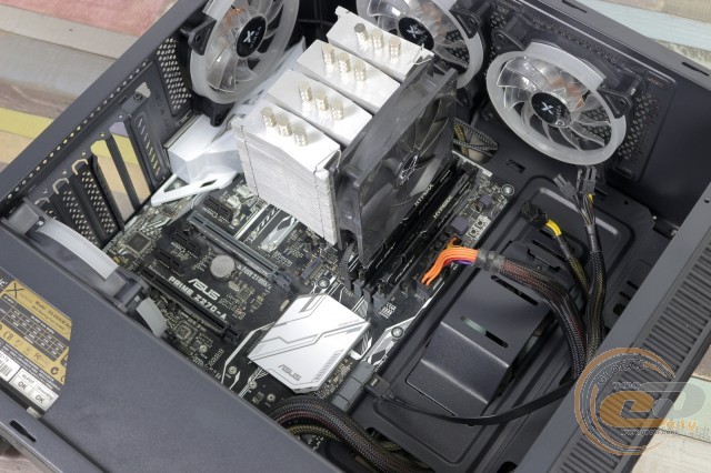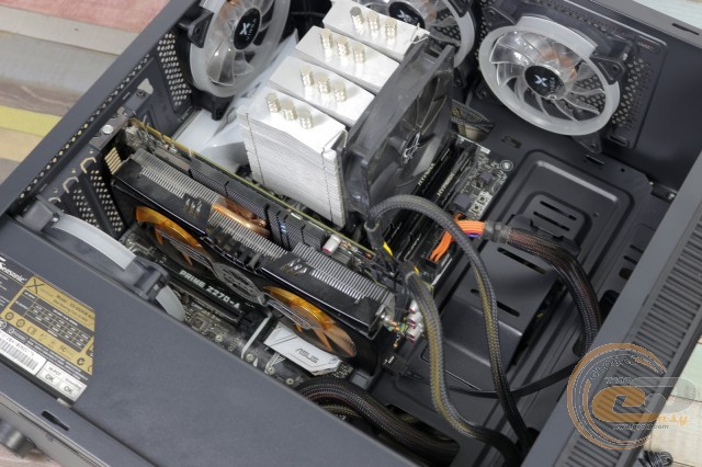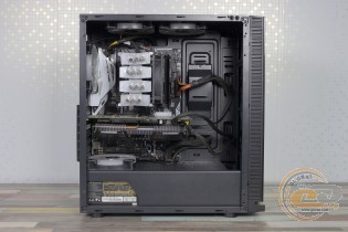 Усередині корпусу знайдеться місце для самих габаритних комплектуючих, а сам процес складання не викликає ніяких питань. Нас засмутила лише слабка ефективність вентиляторів на фронтальній панелі, адже їм просто ніде брати прохолодне повітря. І лише за рахунок великої кількості встановлених пропелерів ми маємо дуже належні температурні показники компонентів з високим тепловиділенням. Але загальна ефективність семи пропелерів була б вища, за умови достатнього припливу повітря до фронтальних вентиляторів.