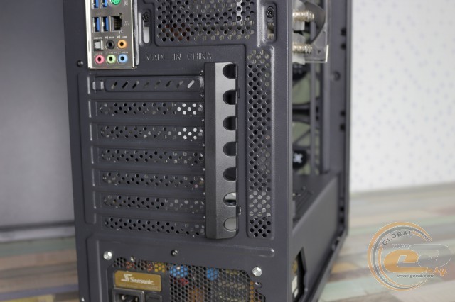 Шість з семи заглушок слотів розширення - одноразові. Система безгвинтового кріплення не передбачена - виробник пропонує використовувати звичайні гвинти.