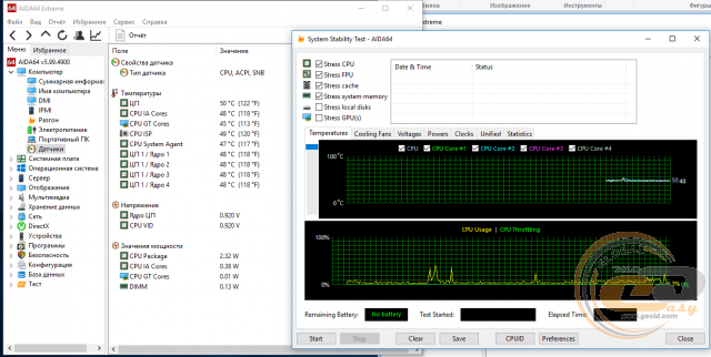 У простої температури ключових вузлів не перевищували 50°С. Запуск стрес-тестів прогріває ядра процесора до 67°С, а iGPU - до 62°С. Система працювала стабільно, без падіння продуктивності і пропуску тактів процесором. Шум був відсутній, оскільки міні-ПК використовує пасивну систему охолодження. Він може з'явитися лише після встановлення жорсткого диска.