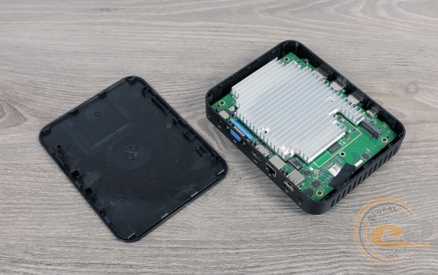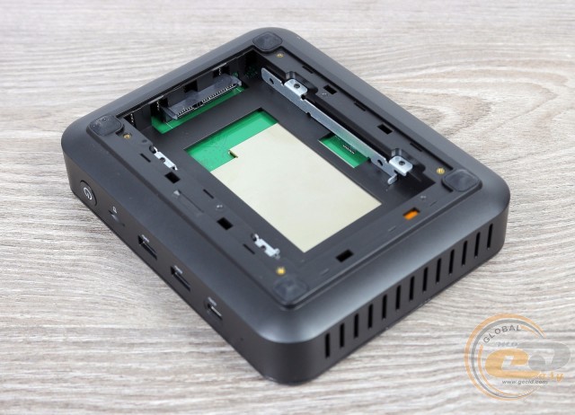 Знявши нижню кришку корпусу, можна отримати доступ до внутрішніх компонентів. Відразу ж під нею знаходиться посадкове місце для 2,5-дюймового накопичувача і порт SATA 6 Гбіт/с для його підключення.