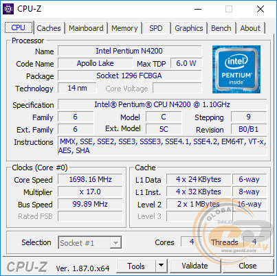 Intel Pentium N4200 (4 / 4 x 1,1 – 2,5 ГГц; L2 – 2 МБ) |