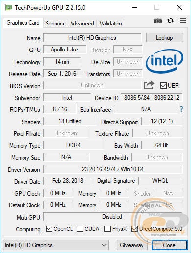 Intel HD Graphics 505 (200 – 750 МГц) |
