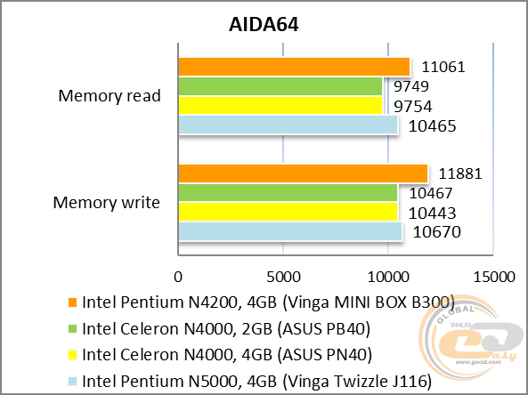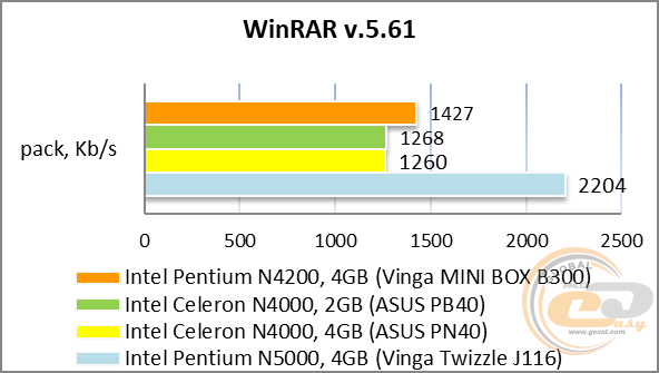 В якості конкурентів для порівняння ми вибрали розглянуті раніше моделі міні-ПК ASUS Mini PC PN40 і Mini PC PB40 з різним об'ємом оперативної пам'яті і процесором Intel Celeron N4000, а також ноутбук Vinga Twizzle J116 на базі процесора Intel Pentium Silver N5000 (4/4 х 1,1 - 2,7 ГГц) і 4 ГБ оперативної пам'яті в двоканальному режимі.