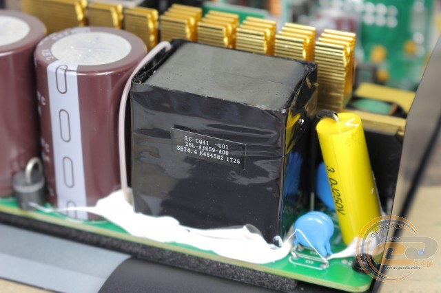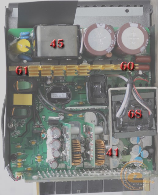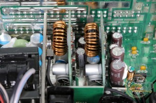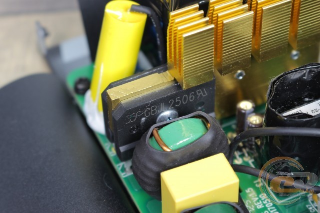 На цій же панелі розміщена частина EMI-фільтра, що складається з двох Y- і одного X-конденсатора.