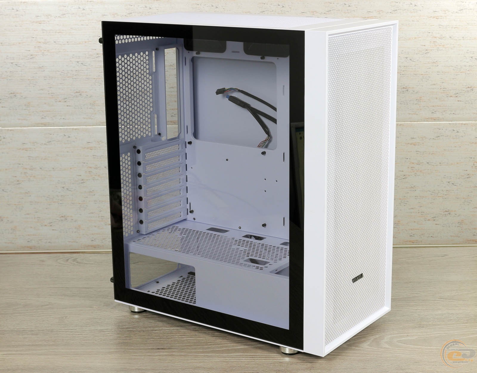 Як і годиться якісному, але не дуже дорогого корпуса, Vinga Pillar White не несе в своїй конструкції особливих дизайнерських вишукувань. Він використовує просту прямокутну форму шасі, яка виглядає безпрограшно в будь-якій ситуації, особливо з урахуванням класичного чорно-білого оформлення кольору.