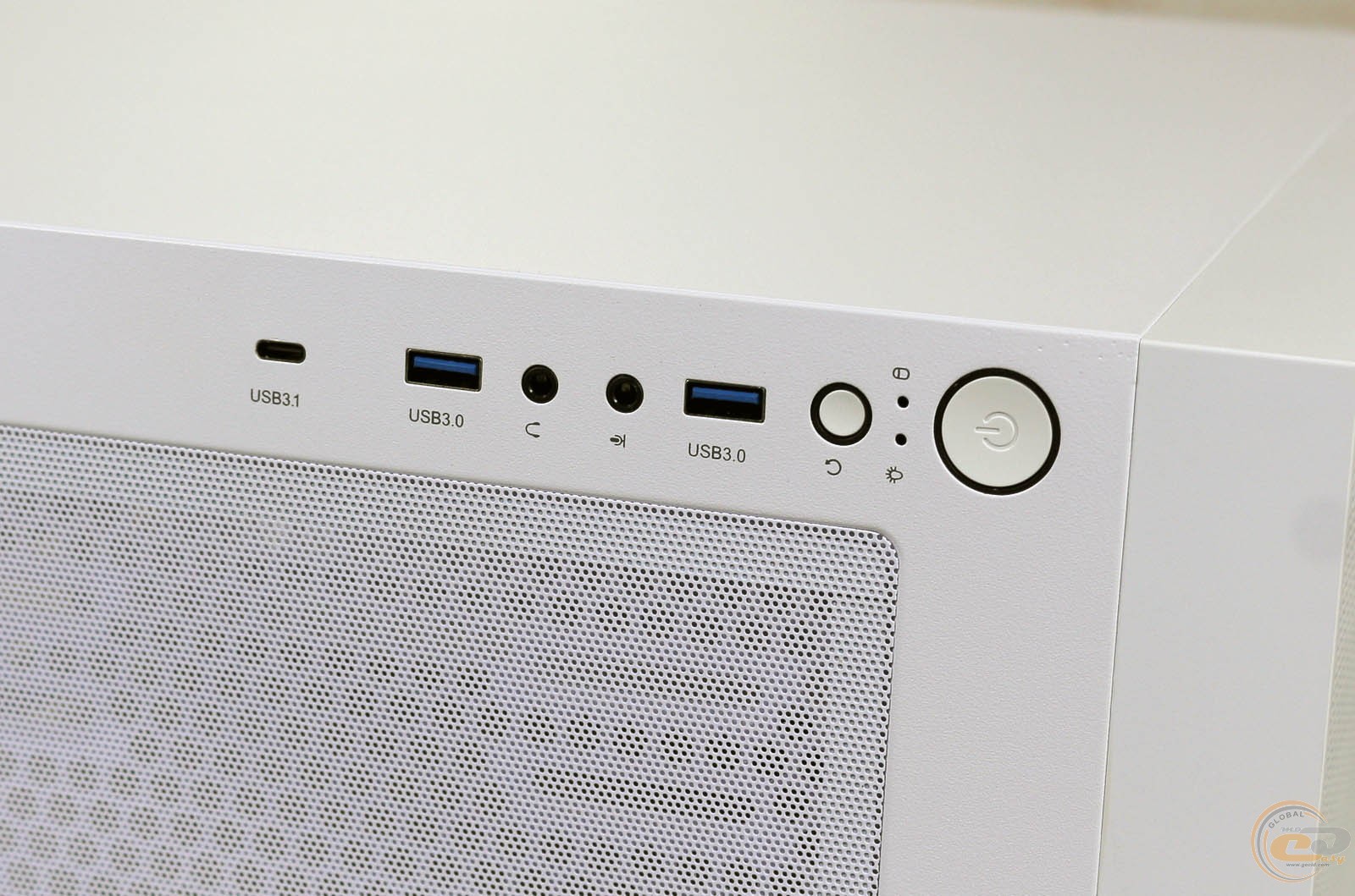 Зовнішні порти розташувалися на правому боці верхньої панелі. Тут є два USB 3.0, один USB 3.1 Type-C і пара 3,5-мм аудіо роз'ємів для мікрофона і навушників. Трохи ближче до передньої панелі знаходяться кнопки увімкнення і перезавантаження. Вони отримали однакову форму, але завдяки різним розмірам їх складно переплутати наосліп.
