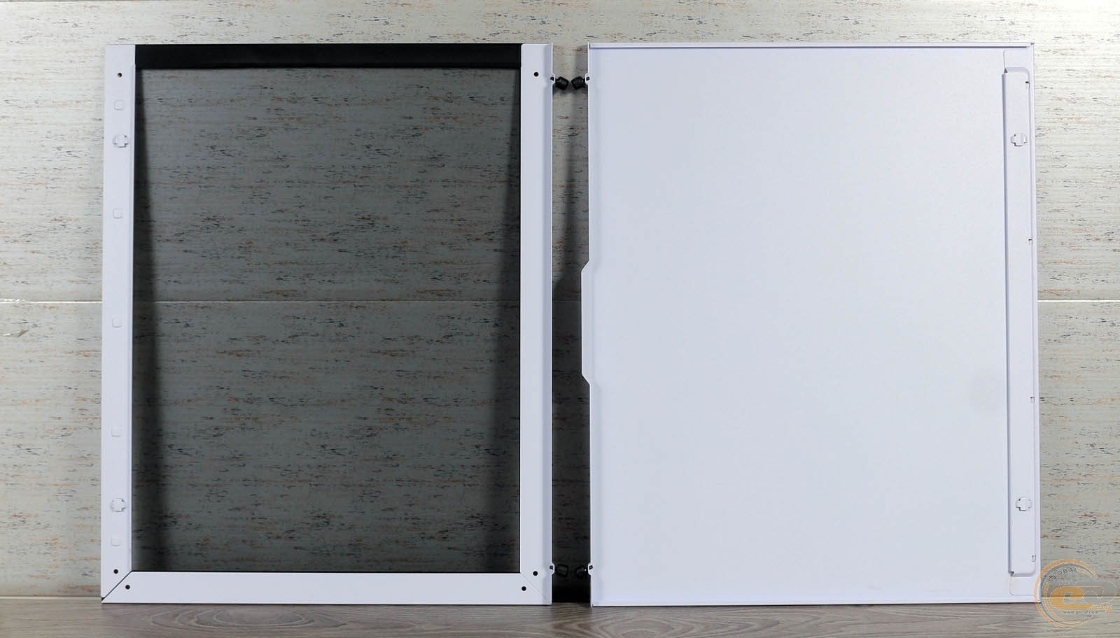 Ліва боковина являє собою прозору скляну панель (373 х 460 мм) товщиною 3,85 мм. Вона дозволяє милуватися внутрішніми компонентами. Тримається вона на двох металевих гвинтах з накатаною головкою. До слова, гвинти не випадають після викручування, і ви їх точно не втратите.