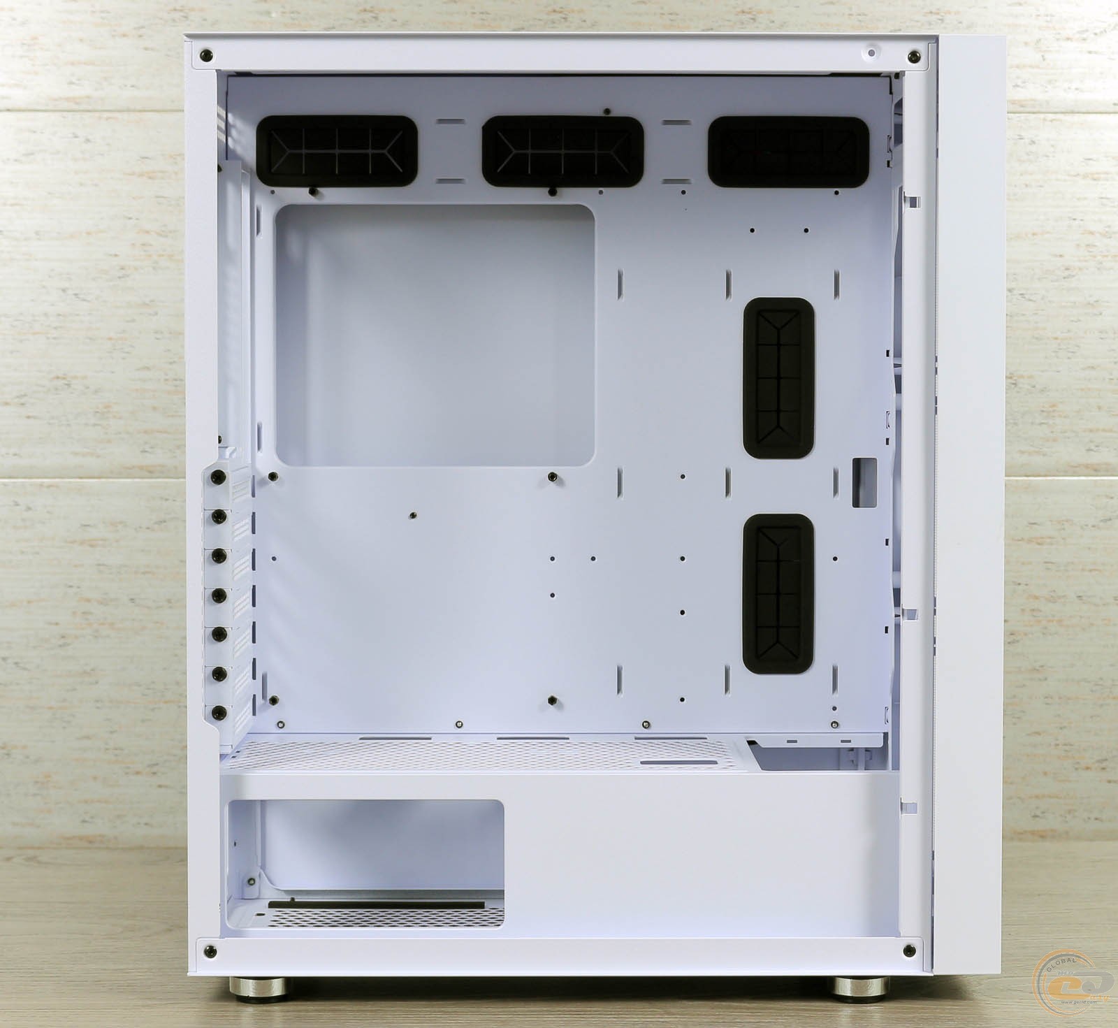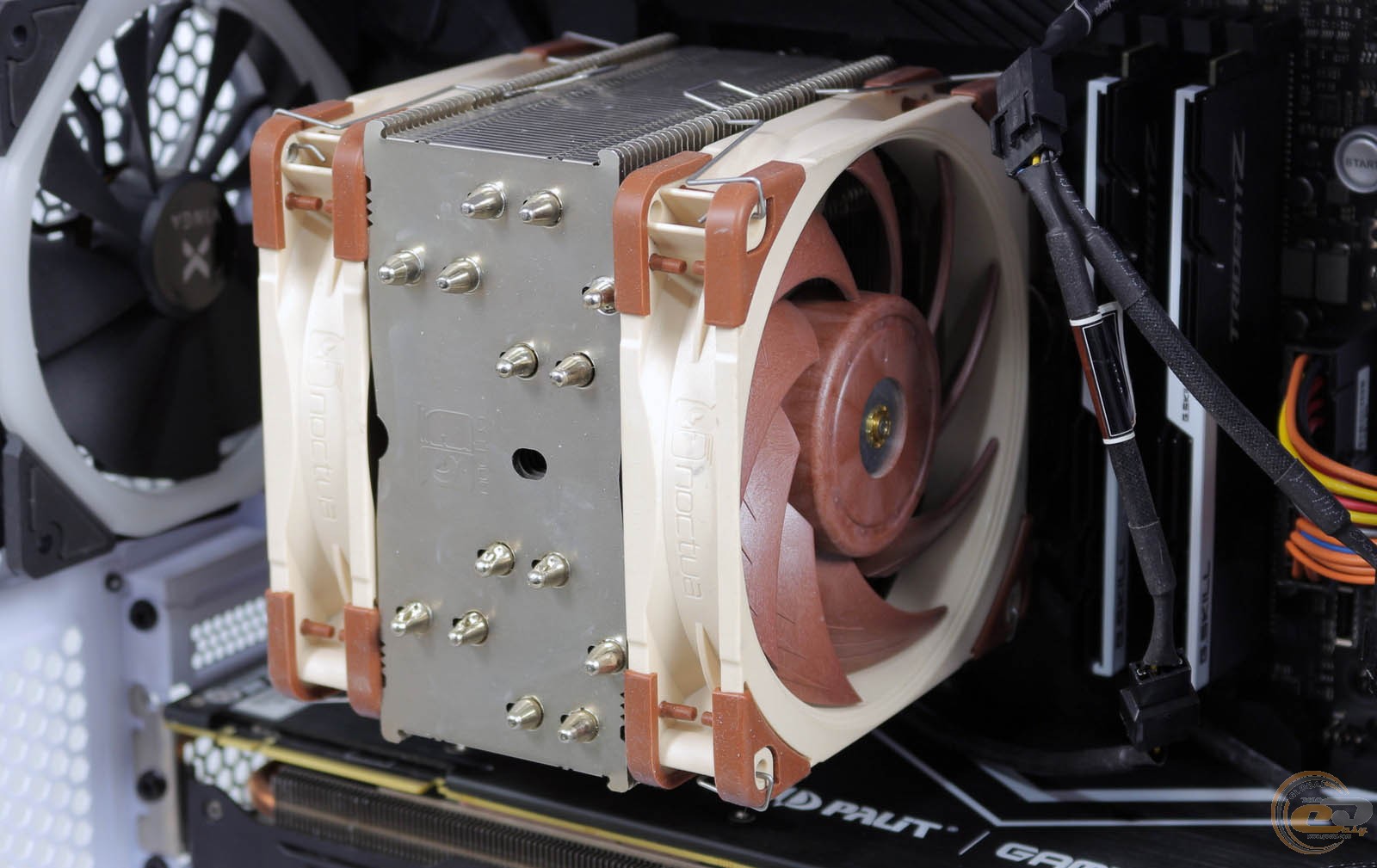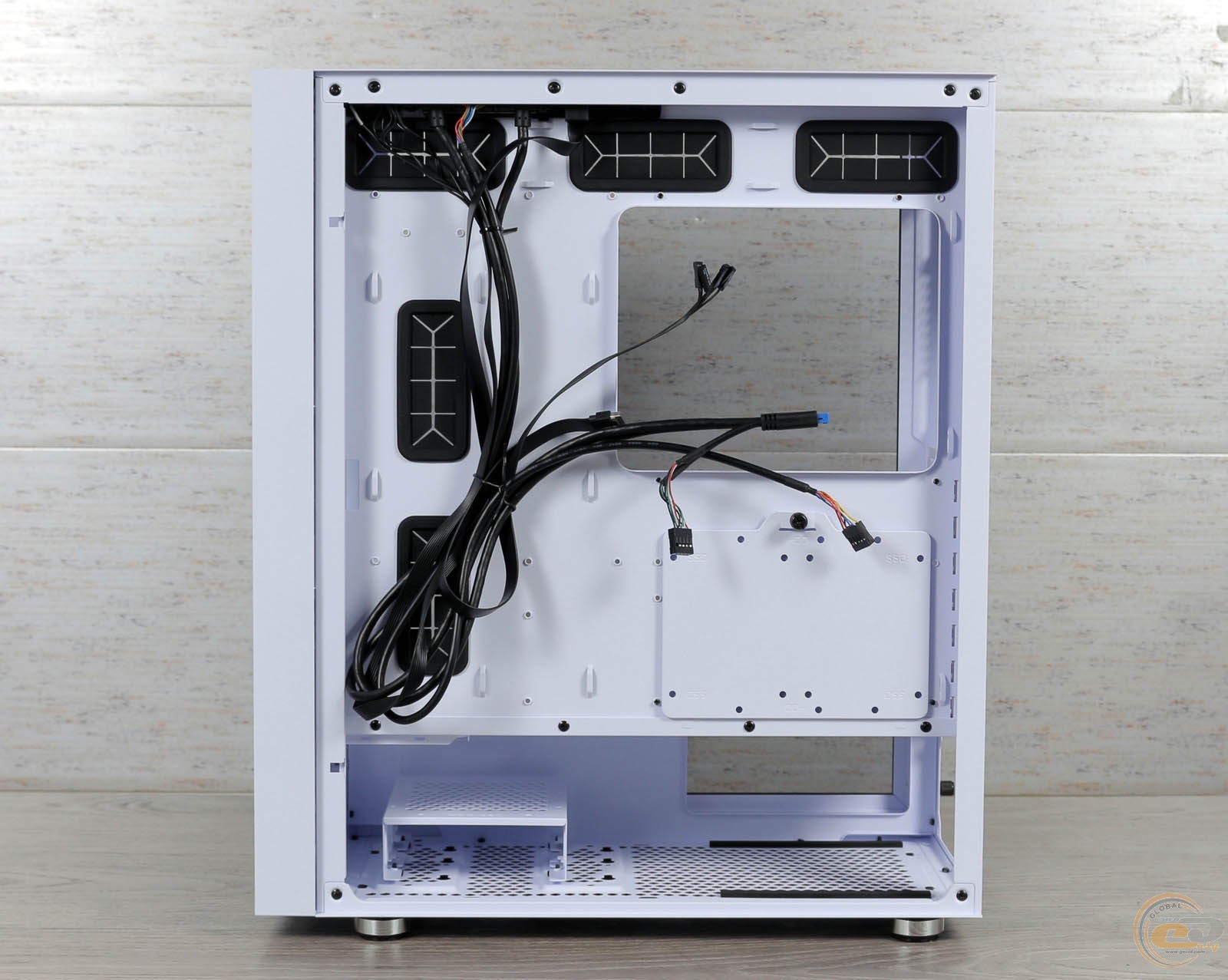 За нею сховалися посадкові місця для трьох 120-мм або двох 140-мм вентиляторів. Замість них можна закріпити радіатор для водянки типорозміром від 120 до 360 мм.