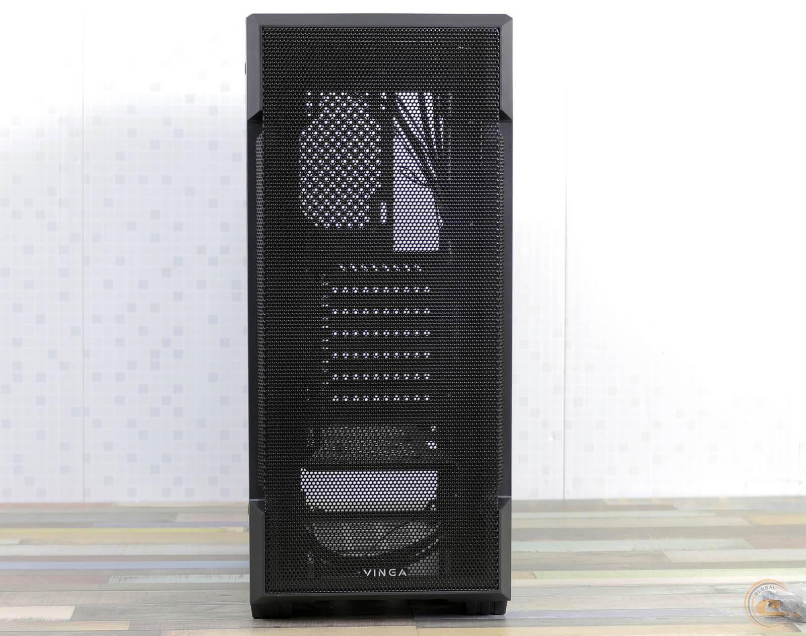 Корпус Vinga Wind відноситься до категорії мейнстрім-пристроїв, де важливо поєднання якості і вартості. Не слід шукати в його дизайні нічого незвичайного, оскільки це негативно позначилося б на його кінцевій ціні. Модель отримала просту прямокутну форму шасі, скляну бічну панель і пластик з металевою сіткою спереду. Виглядає дуже презентабельно і солідно.