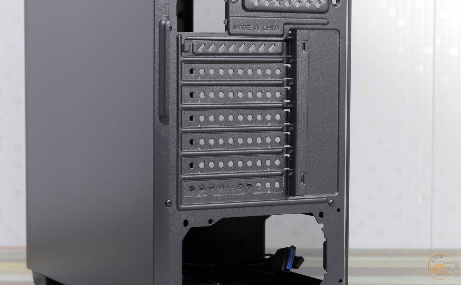 Тильна частина корпуса отримала сім горизонтальних слотів розширення (один з багаторазовою заглушкою). Є загальна притискна пластина, яка фіксується одним гвинтом. Поруч притулився виріз під інтерфейсну панель материнської плати і посадкове місце під 120-мм вентилятор.