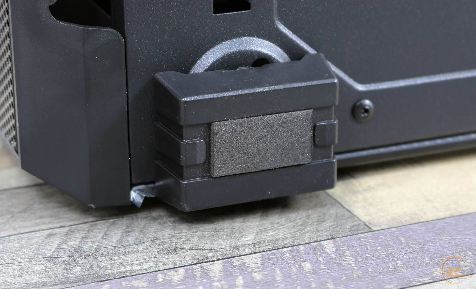 Там же розташовані дві пари пластикових ніжок висотою 16 мм із гумовими накладками. Вони забезпечують хорошу стійкість на різних типах поверхні і достатній приплив повітря для джерела живлення.
