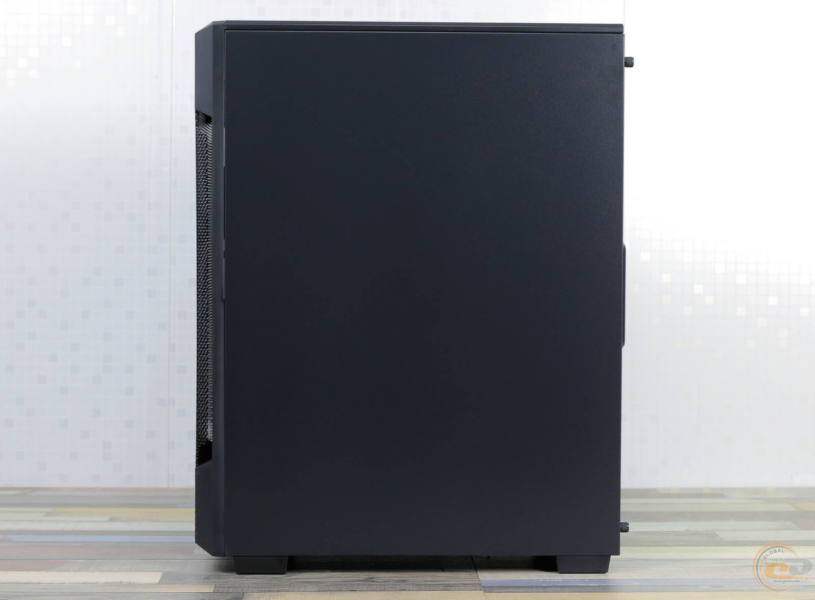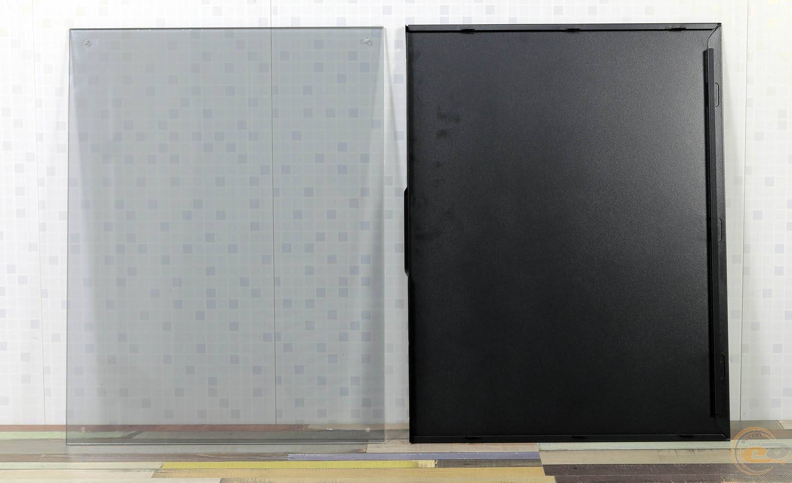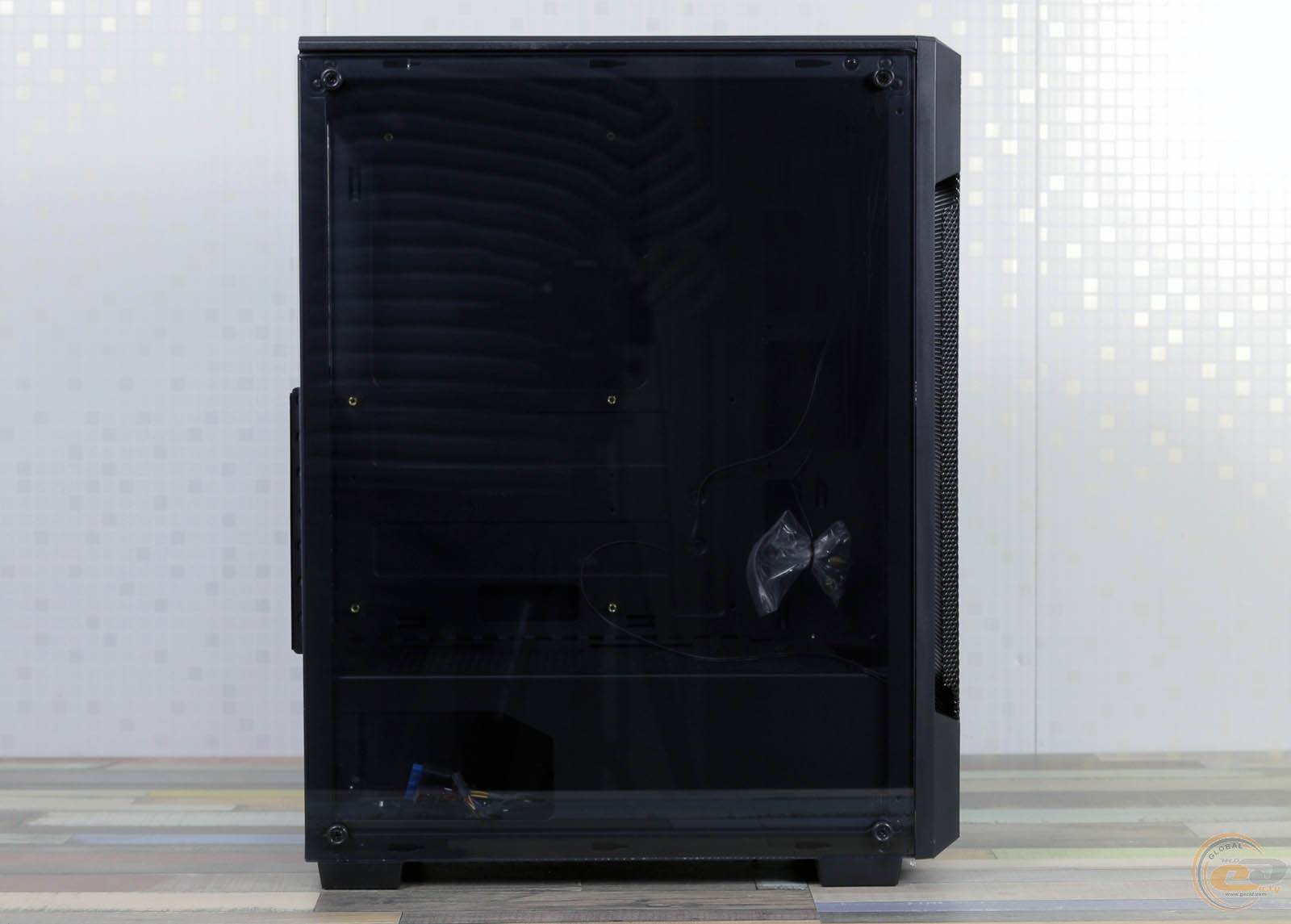 Ліва боковина є злегка затіненою скляною панеллю з розмірами 370х435х3,86 мм. Вона дозволяє милуватися внутрішніми компонентами. Тримається вона на чотирьох гвинтах з накатаною головкою.