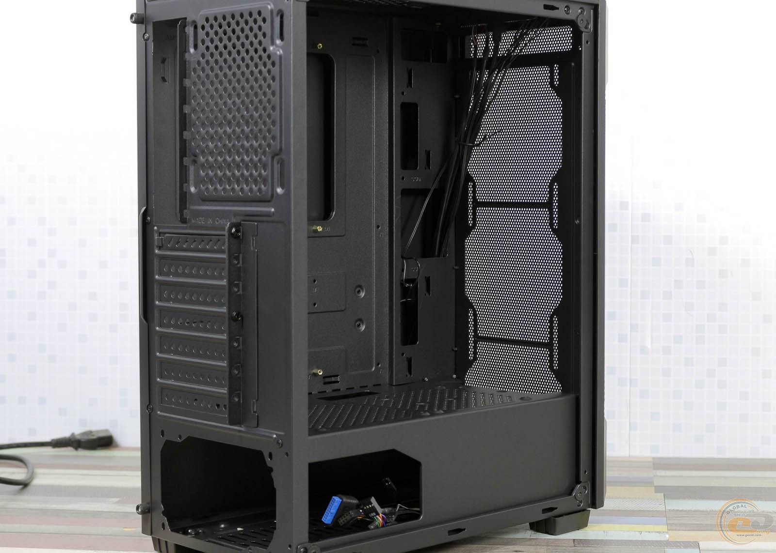 Геймерський корпус типорозміру Midi Tower має вертикальну установку, блок живлення не передбачений в комплекті. Корпус має 4 внутрішніх відсіків для розширення розмірами від 2.5 дюймів до 3.5 дюймів. Також є 7 слотів розширення. Охолодження здійснюється за допомогою 6 вентиляторів (опціонально), кожен - діаметром 12 см. Для зручності на корпусі розташовано чотири зовнішніх роз'єма, два USB 2.0, один USB 3.0, вхід для навушників і мікрофону.