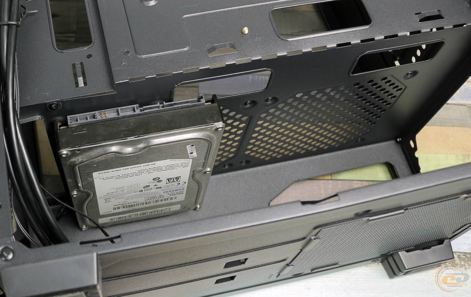 Для встановлення накопичувачів у вашому розпорядженні є пара посадкових місць для 2,5-дюймових моделей на піддоні і ще пара місць для 2,5 або 3,5-дюймових пристроїв на зворотному боці кожуха.