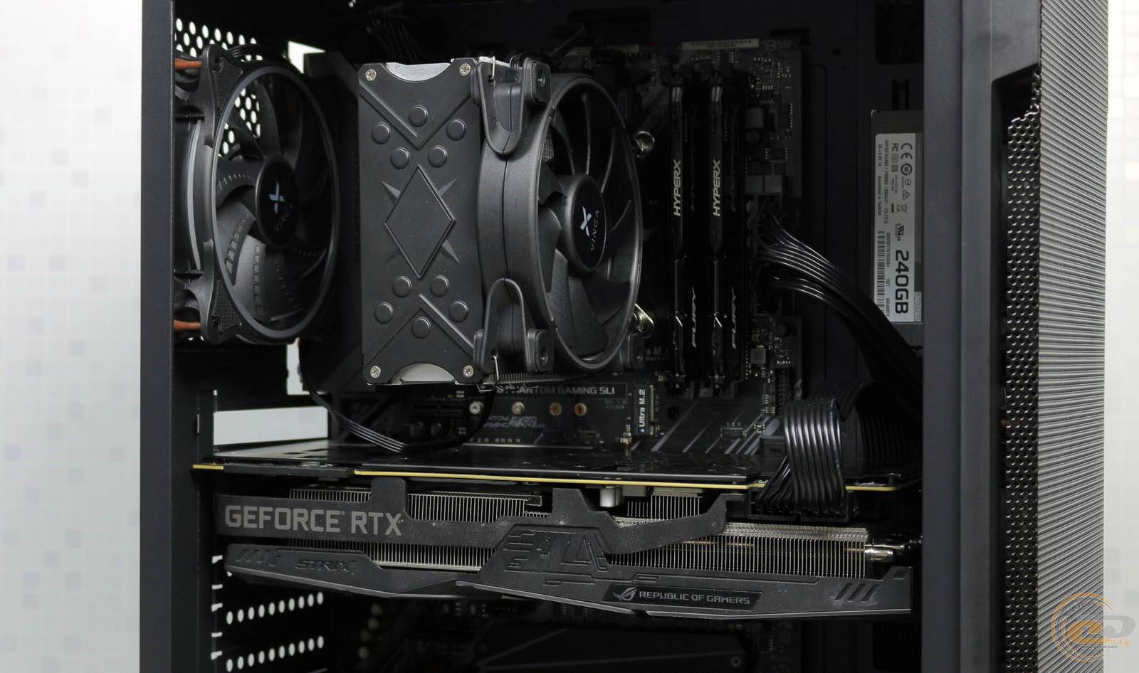 Корпус постачається без вентиляторів. Для тестування ми взяли три вентилятора від СВО Vinga Wanderer-360, встановивши спочатку одну на видув на тильну панель, а потім ще дві на вдув спереду. Для проведення тестів швидкість обертання корпусних вентиляторів була зафіксована на позначці 1800 об/хв. Температура повітря в приміщенні становила 21°C.