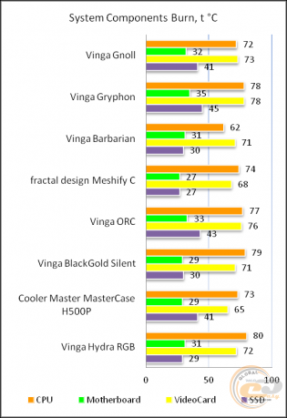 Тил корпусу радує не тільки шаром чорної фарби (до цього ми вже звикли), а й іншою дуже практичною рисою - декількома сантиметрами простору між верхньою панеллю і вирізом для інтерфейсів материнської плати, призначеними для встановлення радіатора СВО. Незважаючи на значно більшу високу ціну, у Vinga Orc такої опції не виявилося. В іншому «гнолл» нагадує побратимів лінійки: місце для 120-мм пропелера з регулюванням за висотою, сім заглушок для слотів розширення (шість з яких одноразові) і нижнє розташування блоку живлення.