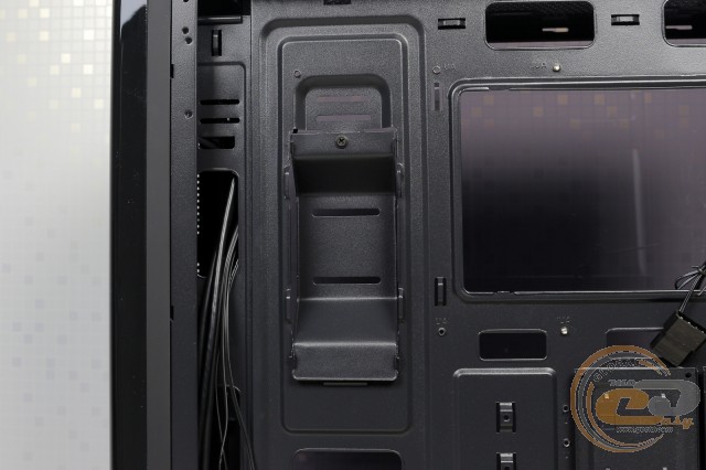 У передній частині шасі є «рейки» для монтажу максимум трьох 120-мм вентиляторів. Крім того, на самій передній панелі присутні пластикові фіксатори для даних пропелерів. Рішення як би зручне, проте захоплювати прохолодне повітря їм буде ніде. За посадковими місцями для вентиляторів у нижньому тунелі передбачений виріз, завдяки якому стінку можна використовувати і в якості опори для радіатора СВО довжиною до 360 мм.