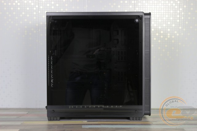 Ліва панель подана загартованим тонованим склом розмірами 409 х 435 мм і товщиною 3,15 мм. Завдяки цьому внутрішні компоненти завжди на виду, тому при їх виборі обов'язково варто подбати про відповідний дизайн і наявність ілюмінації, що допоможе надати збірці індивідуальності і проявити свою творчу натуру.