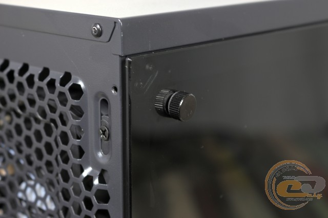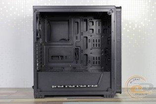 Ліва панель являє собою загартоване тоноване скло розмірами 409 х 435 мм і товщиною 3,15 мм. Права стінка - це звичний лист металу товщиною 0,5 мм, посилений ребром жорсткості. Тут же є штампування, яке можна використовувати як додаткове місце для укладання проводів.