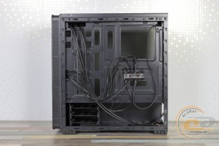 Ззаду все стандартно для компонування з нижнім розташуванням блоку живлення. Над його посадковим місцем знаходяться сім слотів розширення, виріз для інтерфейсної панелі материнської плати і встановлена вертушка на видув.