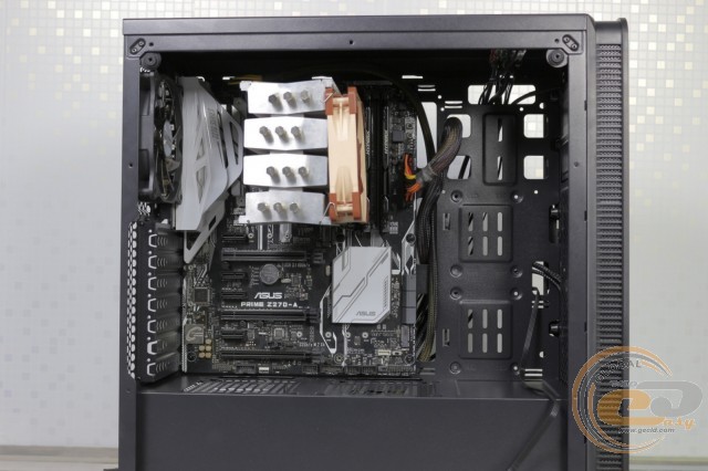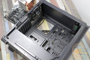 Ширина корпуса дозволяє встановлювати процесорні охолоджувачі висотою до 162 мм, тому нам без проблем вдалося розмістити 158-мм кулер Scythe Mugen 3.