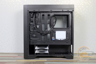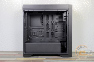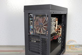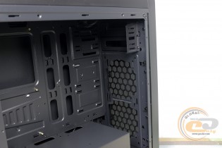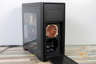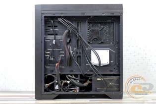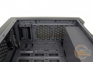 Пофарбована в чорний колір тильна частина (до речі, як і все шасі) зможе дати прихисток 120-мм вентиляторові з невеликим регулюванням висоти його розташування. Нижче знаходяться сім слотів розширення з багаторазовими перфорованими заглушками, а також місце для встановлення джерела живлення. Боковини кріпляться звичним способом – гвинтами з накатаними голівками.