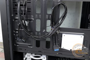 Кабелі, що йдуть від передньої панелі, мають достатню довжину, а отвори в піддоні дозволять якомога непомітніше підвести їх до материнської плати.