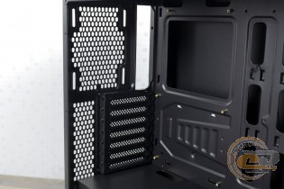 У відсіках для 5,25" пристроїв є одноразові металеві заглушки. Традиційно для корпусів виробника ліве кріплення має невелику довжину, тому той же оптичний привід бажано додатково зафіксувати й праворуч.