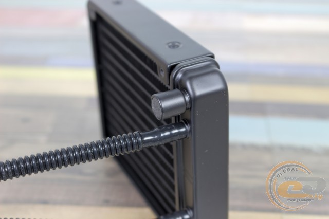 Радіатор, як і помпа, оснащений нероз'ємними фітингами, на які напресовані шланги. Заправне місце запечатане наглухо.