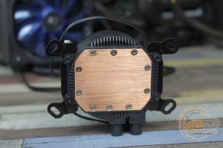 В основі помпи знаходиться мідний водоблок без нікельованого покриття. Підошва площею 60 х 50 мм закріплена на десяти гвинтах типу Torx і закрита захисною плівкою. Вона доволі рівна й поцяткована дрібними слідами грубої шліфовки.