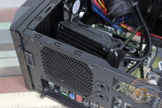 Перед встановленням водоблока на CPU бажано закріпити радіатор СВО в корпус ПК і перевірити, чи вистачає довжини шлангів. У нашому випадку Vinga Sea була легко розміщена разом з вентилятором на задній стінці корпуса Enermax Hoplite ECA 3220 і орієнтована на видування повітря з системи. Для цього ми скористалися гвинтами з комплекту постачаня.