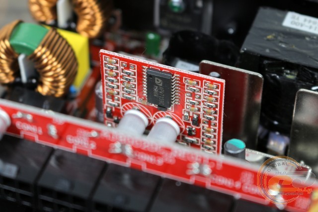 Синхронний випрямляч має чотири мосфети, розміщених на звороті PCB. Через термопрокладки тепло від них відводиться на корпус джерела.