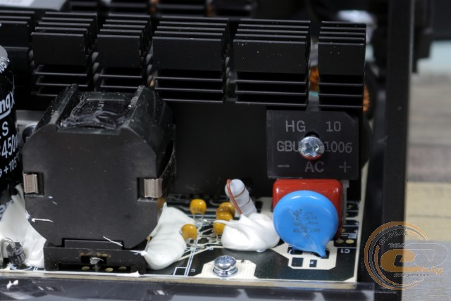 Випрямлення напруги здійснює діодна збірка GBU1006, розрахована на струм силою до 10 А. Оскільки даний елемент прикручений до головного радіатора, то за його нагрівання і збереження ми не переживаємо.