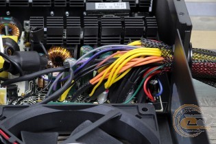 З першого погляду на ціну тестованого БЖ, дуже легко здогадатися, що всі кабелі виведені безпосередньо з корпусу. Вони одягнені в нейлонове обплетення, які своєю чергою за краями зафіксовані термоусадками. На калібрі дротів не економили - маємо 18 AWG (1,02 мм у діаметрі з площею перетину 0,82 мм2). А ось довжина всіх провідників за винятком PCIe виявилася на 10 см менша від заявленої. Заради справедливості відзначимо, що і таких значень повинно бути достатньо для використання пристрою у складі корпусу формату Middle Tower з нижнім розташуванням БЖ.