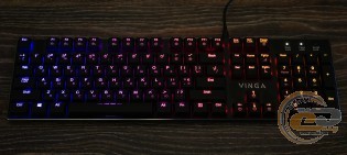 В основі Vinga KBGM-395 використовуються низькопрофільні механічні перемикачі Kailh Blue. За своїми властивостями вони нагадують популярні Cherry MX Blue, але з деякими відмінностями. Так, приблизно на середині ходу маємо характерне клацання, але майже без тактильної віддачі. Сила натискання легша, ніж у повнорозмірних рішень - заявлено близько 45 г проти 50 г. Та й хід клавіш дещо коротший.
