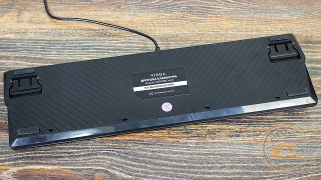 Клавіатуру можна легко підхоплювати при перестановці завдяки формі боковин, які звужується. На днище є розкладні ніжки з гумовими накладками. На столі вона коштує досить впевнено, у тому числі завдяки масі більше за 1 кг.