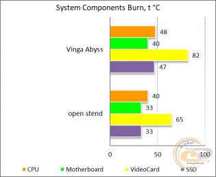 Корпус Vinga Abyss тестувався з єдиною встановленою вертушкою. При цьому швидкість роботи СО процесора і відеокарти була примусово виставлена на 100%. Температура повітря в приміщенні становила +25°C.