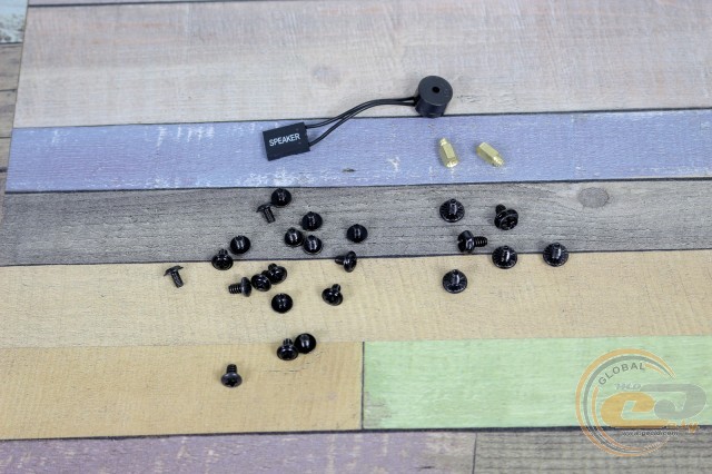 Скромна комплектація характерна для 30-доларового корпуса. Вона містить лише гвинти, стійки і системний динамік.