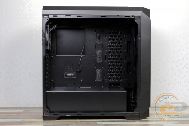 Права боковина корпусу являє суцільний лист сталі з невеликою перфорацією, яка швидше має декоративне призначення і особливої погоди не робить. Ще один дизайнерський елемент займає велику площу лівої стінки - прозоре акрилове вікно розмірами 368 х 348 мм. Такі його габарити дозволять гарненько розглянути всі комплектуючі і без застосування підсвічування.