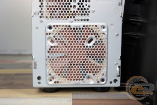 Поруч з твердотілим носієм можна поселити 120, 92 або 80-мм вентилятор, що направляє прохолодне повітря всередину корпуса. При цьому врахуйте, що отвір для його надходження є лише на нижній грані передньої панелі. Нагадаємо, що співпрацюватиме з переднім пропелером тильний 120-мм або 80-мм, який виводить нагріте повітря за межі корпуса. Правда, купувати всі ці компоненти власнику новинки доведеться окремо.