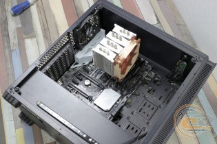 Ширина корпуса дозволяє встановлювати процесорні охолоджувачі висотою до 162 мм, тому нам без проблем вдалося розмістити 158-мм кулер Scythe Mugen 3.
