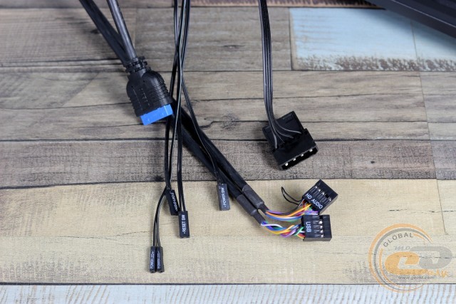 Кабелі, що йдуть від передньої панелі, мають достатню довжину, а отвори в піддоні й тунелі дозволять якомога непомітніше підвести їх до материнської плати.